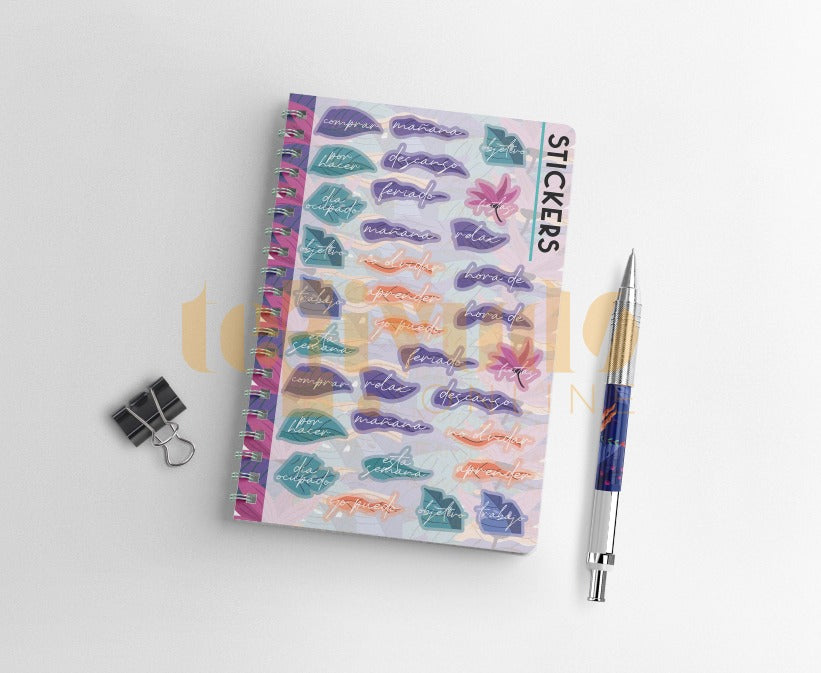 Cada planner está listo para imprimir en formato A5 y cuenta con portadas, contraportadas, hojas internas y secciones de organización que se adaptan a tus necesidades. Además, incorpora stickers digitales para complementar tu presentación.