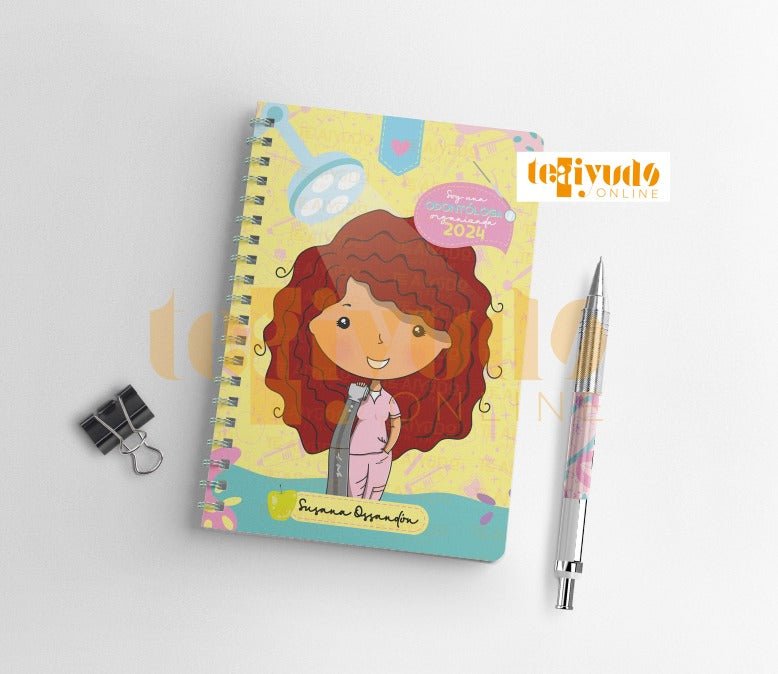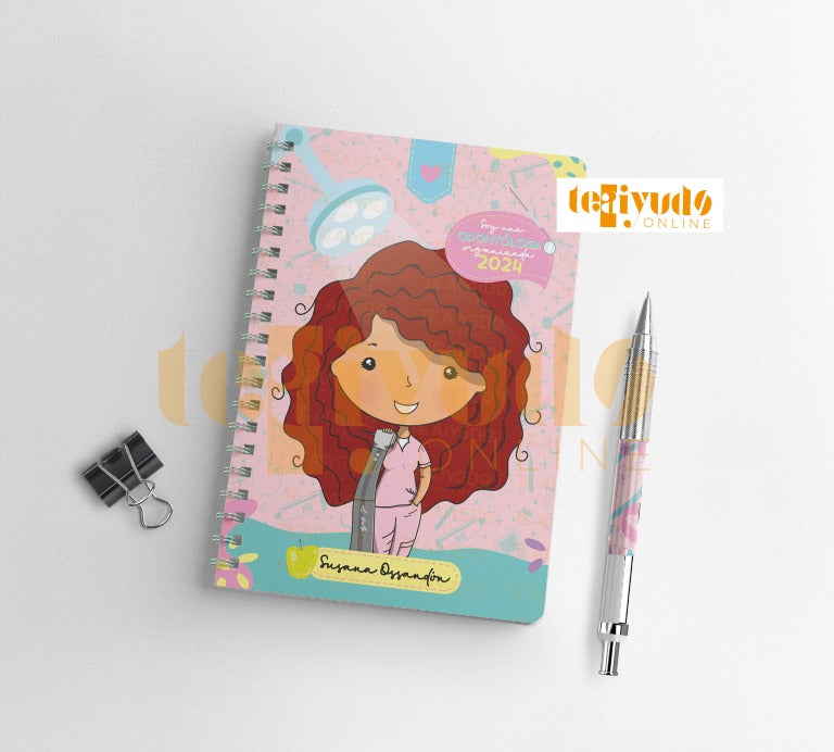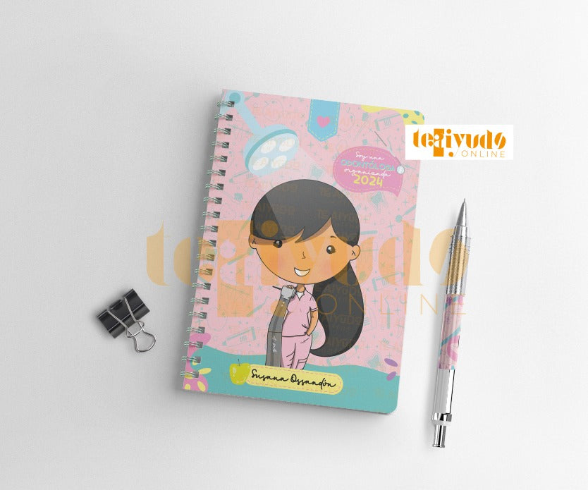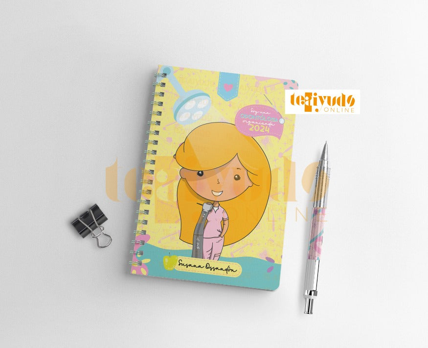 Kit Odontología 2023 con 16 portadas A5 para mujer, contraportada, hoja de guarda. Diseños en PNG 300 PPP listos para personalizar.