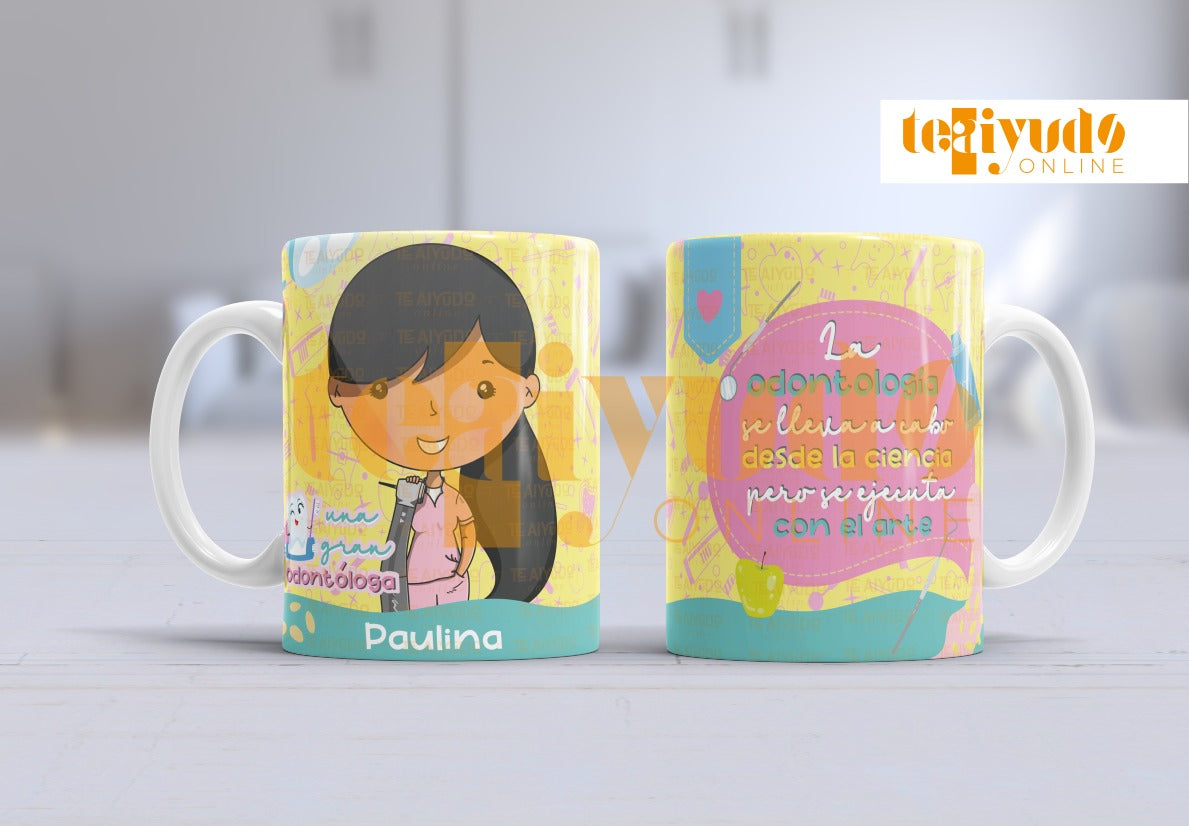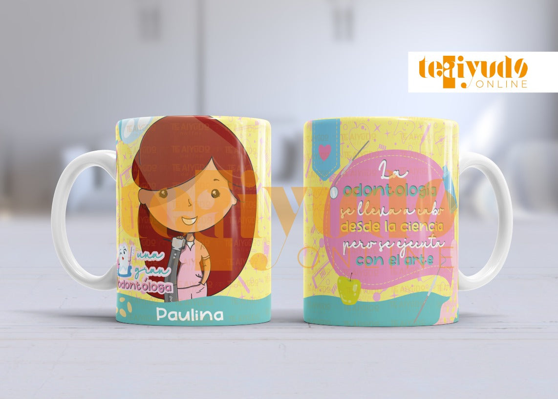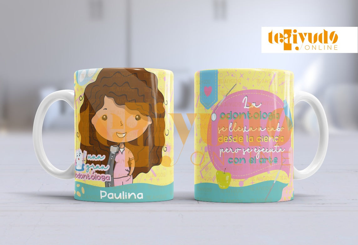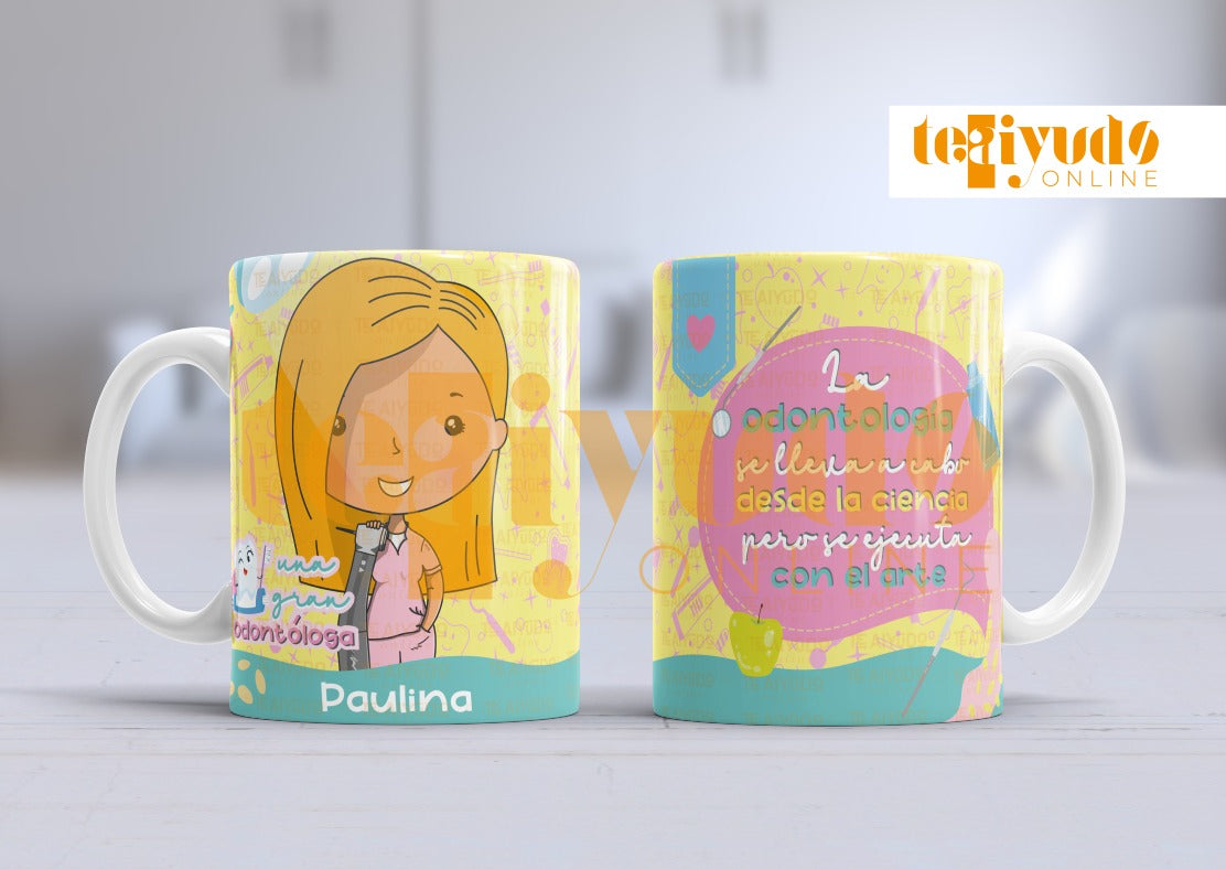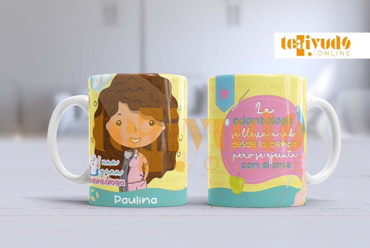 16 diseños de tazones con avatares odontóloga 2023 (pelo liso largo, liso corto, crespo largo, pelo ondulado). con y sin texto