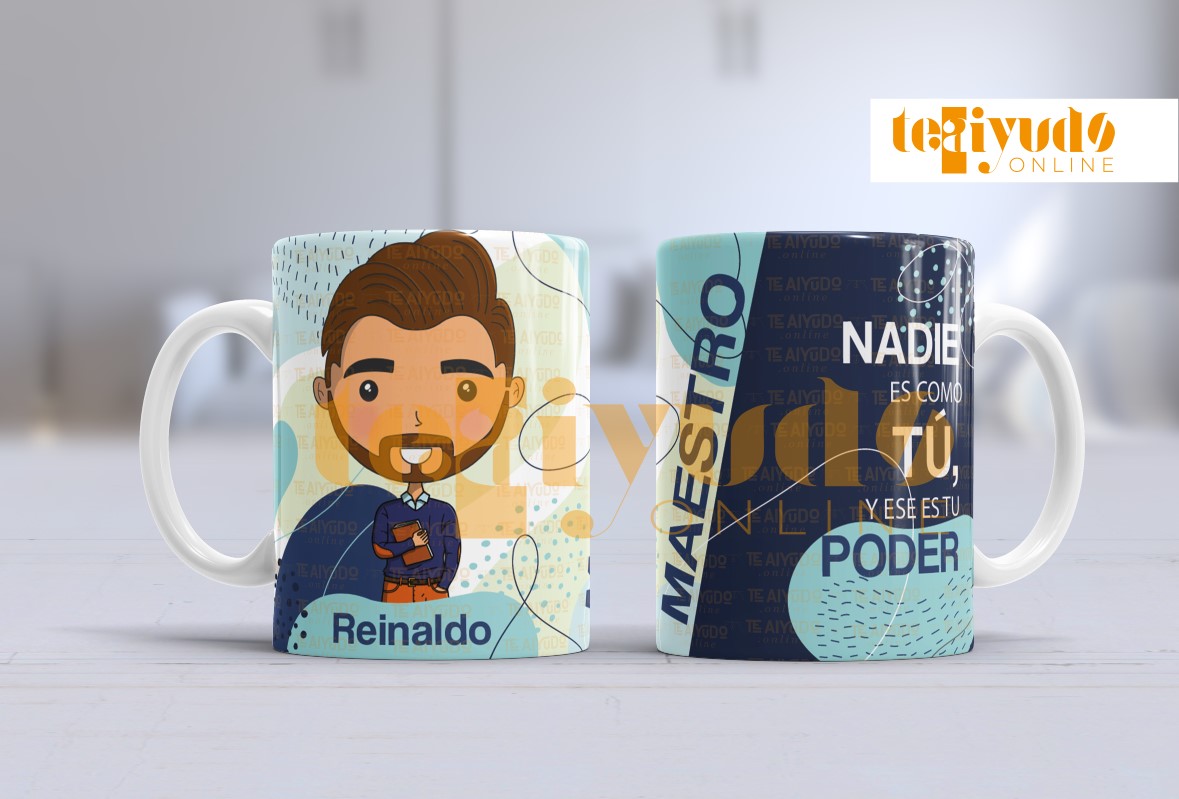 Kit digital de 16 diseños de tazones profesor Línea Simple varón 2023, con y 16 sin mensajes. Ideal para sublimación, regalos o papelería personalizada.
