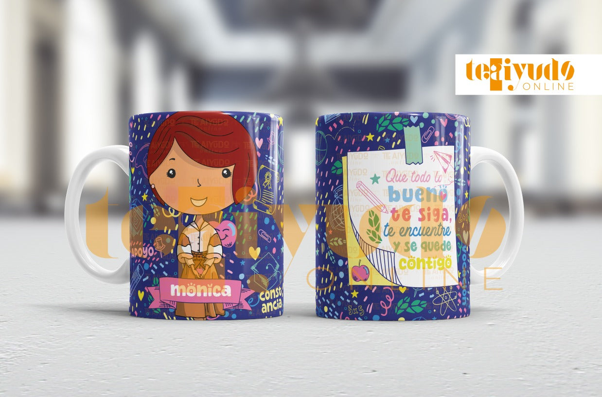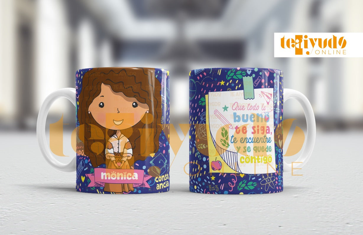 Este kit digital Profesora 2024 de la colección TeAiyudo – Cute Blue está diseñado para crear tazones personalizados con avatares femeninos.