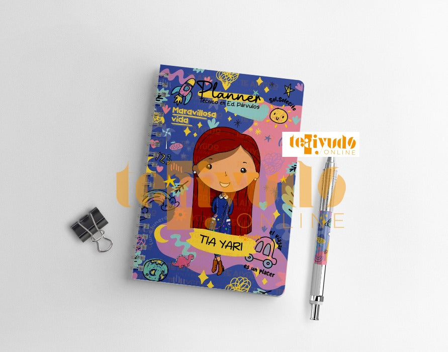 Dale un estilo único y moderno a tus planners o agendas con las portadas Cosmic. Este diseño combina tonos azul y morado, acompañado de avatares con 7 estilos de cabello en 6 colores, pensados para adaptarse a distintas preferencias. Además, se incluyen elementos extra que complementan tu presentación y te permiten crear un acabado profesional y creativo.