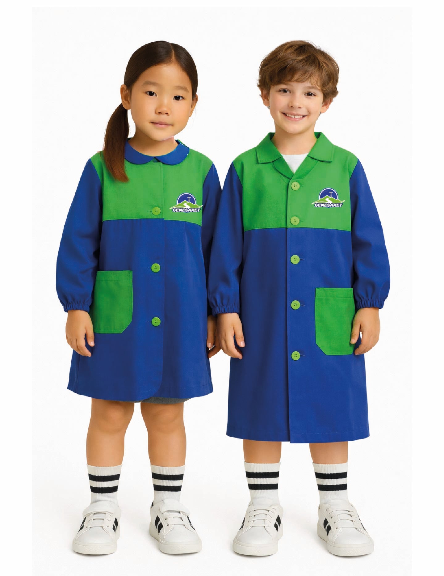 • Diseño: Cotona varón en colores institucionales y delantal niña en colores institucionales.