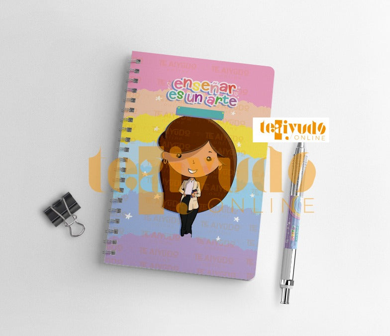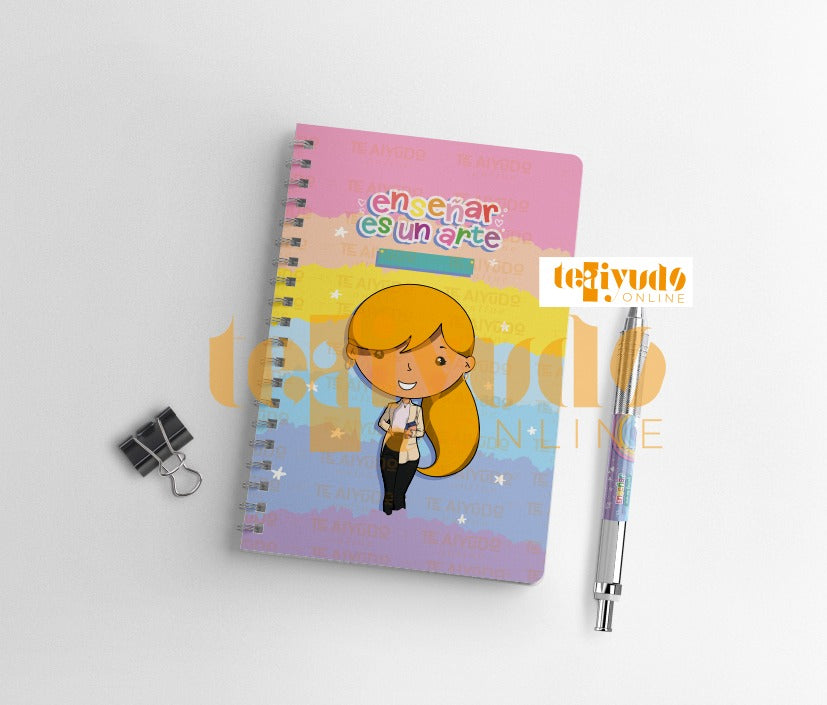 Kit digital Profesora 2024 — Rainbow Colors: set de portadas A5 diseñado para emprendedoras en papelería y sublimación que buscan variedad y acabado profesional. Estilo colorido y moderno, pensado para planners, agendas y cuadernos personalizados. Incluye portadas con y sin texto, contraportada, hoja de guarda y recursos (frases PNG y referencia de tipografías) que facilitan la personalización y presentación de tus productos. Ideal para vender productos físicos o armar mockups de producto con coherencia visual.