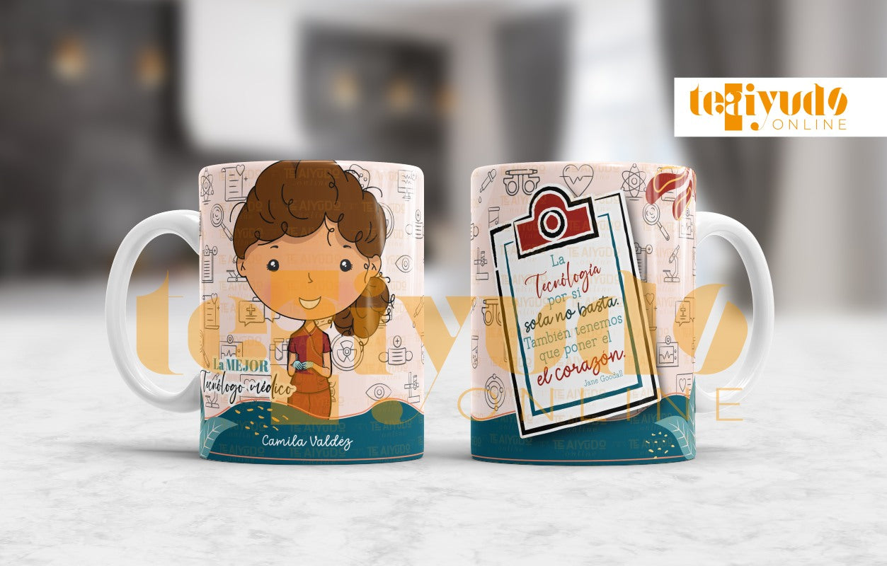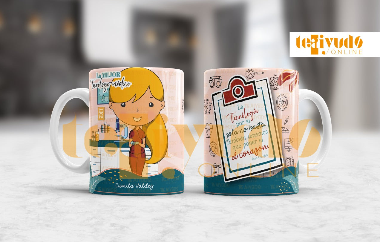 Crea diseños únicos y llenos de identidad con este set de tazones personalizables para Tecnólogas Médicas, pensado para quienes desean ofrecer productos con un acabado profesional y coherente con la línea de su emprendimiento.